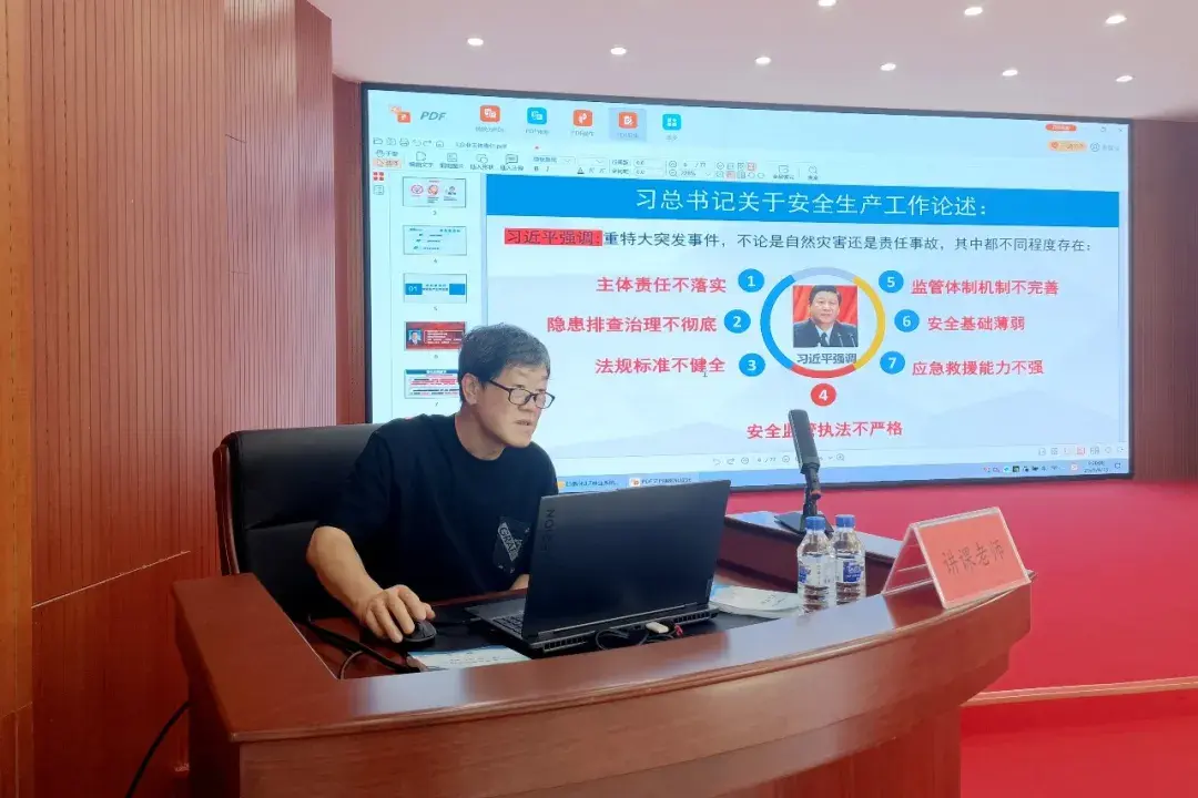 本次培训特邀高级工程师杜勤进行授课。培训内容紧扣主题,涵盖学习习近平总书记关于安全生产的重要论述、安全生产法律法规、安全生产责任、标准化与现场管理等方面。培训过程中,通过典型事故案例,将安全生产事故易发情况进行形象展示,揭示了落实全员安全生产责任制、全面排查消除事故隐患的重要性,进一步提升参训人员的安全风险防范意识和应急处置能力,推动生产经营单位安全管理从“被动应对”转向“主动防控”。